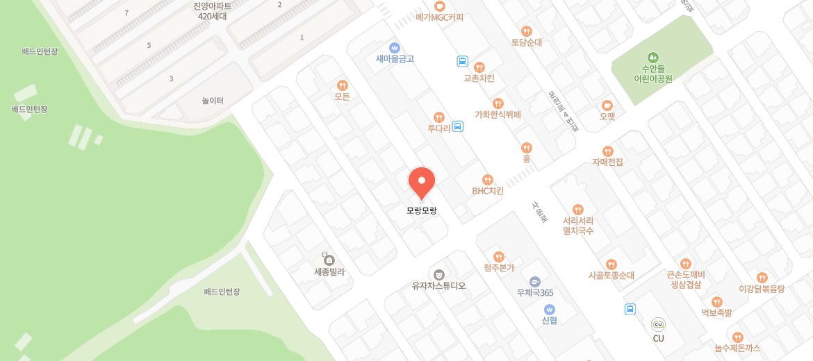 충북 청주시 흥덕구 흥덕로151번길 41 1층 모랑모랑 문의전화. 0507-1408-6705 사업자등록번호. 474-37-01133 E-MAIL. x
